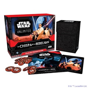 SW Umlimited: La Chispa de la Rebelin, Caja de Presentacin Estrnate en la experiencia de juego organizado de Star Wars: Unlimited con esta caja de presentacin! Dentro encontrars 6 sobres de ampliacin con los que podrs disear tu primer mazo, as como versiones promocionales exclusivas de las cartas de lder de Luke Skywalker y Darth Vader. Hazte con esta caja y participa en el torneo de presentacin con mazos cerrados que organizar tu tienda habitual: es el medio ideal para introducirte en este trepidante juego de reglas sencillas y posibilidades ilimitadas! La coleccin de La chispa de la rebelin presenta contenido y personajes de la triloga original de Star Wars, Rogue One: Una historia de Star Wars y la serie de televisin Star Wars: Rebels. Cada sobre de ampliacin permite disear y mejorar mazos para partidas en los formatos uno contra uno, multijugador, preseleccin y mazos cerrados. Contenido 6 sobres de ampliacin 2 cartas promocionales 19 indicadores 1 reglamento de inicio rpido 1 carta de separacin 1 caja para el mazo Notas Esta caja de presentacin estar disponible una semana antes del lanzamiento (1 de marzo)