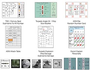 Wolfpack The North Atlantic Convoy Struggles October 1941 - March 1943 Game Wolfpack is a tactical, historical game depicting the struggles between the German submarine Wolfpacks and the allied merchant convoys of WWII. Wolfpack is set in the vast North Atlantic from late 1941 to early 1943. Players Wolfpack is a 1-4 player solitaire/team game. When playing solo, the player will command 2 - 4 submarines. In a team game, players will command 1 - 2 submarines depending on the number of players. The convoy merchant ships and escorts will be controlled by an AI system. In Wolfpack, players will assume the role of a German WWII submarine commander. Players will need to work together to achieve victory. Game Play In a game of Wolfpack, players will start by approaching the Allied merchant ship convoy while trying to make it through the escorts screen undetected. If successful, your submarine will make an attack run on the convoy. As the commander, you will make many decisions like maneuvering your submarine to the best firing angle while making TDC (torpedo data computer) calculations for each of your torpedos, trying to achieve your best shot. You will issue orders to your crew to deal with any damage that your submarine may have sustained. Should we run silent? Do we press the attack? The decisions are up to you. Do all of this while trying to sink as much allied merchant ship tonnage as possible and avoid being detected and sent to the bottom by the allied escort ships. Wolfpack uses a unique card system to resolve many of the game effects. There are several different types of cards in Wolfpack. Below are some samples of these cards. The submarine player boards are used to track various conditions applying to each submarine. TDC calculations for each torpedo Torpedos reloads Hull and Flooding Damage Equipment damage Fire and poisonous gas Repair parties Crew wounds and KIAs Players will use the outer box to approach the convoy and avoid the escort screen. The inner dots and squares are the attack area of the map. Players will maneuver their submarines trying to line up their best shot against the convoy ships. You will track each submarines depth on this map. Red boxes are used by the AI escorts as they hunt their prey. Weather and time of day will determine the fog of war and how many convoy ships you see and which ships you can ID. The heart of Wolfpack is its campaign system. Players will track the progress of their crews during the campaign, linking multiple patrols together to gain as much experience as possible. The more tons of allied merchant ships that you sink, the more experience points that you will have to spend on improvements to your crews performance. Components: One 34 x 22 Mounted Map Board (double sided, small & large convoy) Four 8 1/2 x 5 1/2 Submarine Player Boards (double sided, Type VII & IX) 240 Cards Four Countersheets Four 17 x 11 & Six 8 1/2 x 11 Play Aids One Campaign Information Pad One Rulebook One Playbook One 3 Box Haz clic aqu para descargar el Reglamento y Libro de Escenarios en Espaol (Requiere iniciar sesión)