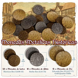Fief Inglaterra Monedas Metlicas UNIDADES MUY LIMITADAS 50 monedas basadas en acuaciones inglesas reales de 1100-1300 d.C. Incluye las siguientes monedas: 20x Latn Henricus Rex I, 18x "Stiefne Rex" de plata, y 12x "Edwarde Grad Rex" de oro