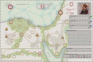 Napoleon in Egypt Think of it, soldiers; from the summit of these pyramids, forty centuries look down upon you. - Napoleon Bonaparte On July 1st, 1798, 35,000 French soldiers landed in Alexandria. This expeditionary forces mission was many-fold: to find an alternative spice route through a foreseen Suez Canal, to settle yet another score with the British, to enlighten the population with ideals stemming from the recent French Revolution, and to discover what marvels and riches this fabled land of the 1001 Nights might hold. This was indeed an expedition where scientists walked alongside soldiers. Leading the French troops was also a young and ambitious general named Napoleon Bonaparte... Napoleon in Egypt is a two-player, card-driven, operational wargame that allows you to recreate the French campaign in Egypt and Syria, from the landing of the French troops to the surrender of General Menou on August 31st, 1801. The game draws inspiration from other top-selling CDGs like Here I Stand and Twilight Struggle. A good and fast-playing introductory wargame thanks to its tight ruleset with few exceptions, the game will also please the veteran wargamers with 100 cards dripping with flavor, challenging players with the hand management every CDG fan has come to love! Napoleon in Egypt comes with four scenarios: The Conquest Where the French surprise the Mamluks and sweep across Egypt (2 hours). The Syrian Anabasis Where the French offensive starts to lose steam as it has to face multiple fronts (2 hours). The Fall Where the French, weary from the fighting, adopt a defensive posture to face strong retaliation from the Mamluks, the Ottomans, and the British (2 hours). The Campaign Where players relive the highs and lows of the French expedition, from its landing to its bitter capitulation (5-6 hours). Highlights: Battle system featuring custom dice which represent the Combat Quality of each Unit involved, leading to a fast combat resolution without having to compute DRMs or refer to charts. Events capturing the many pivotal moments of the campaign: the naval battle of Aboukir, the discovery of the Rosetta Stone, Napoleons untimely decision to return to France, etc. Fortified Spaces populations side with one faction or the other as they trade one occupying force for another. Espionage actions include the assassination of generals, ambushes, and sway of public order. Tracks to measure the progress of the scientific side of the expedition, with perks helping the French Player on the field. In Napoleon in Egypt, a French Player will square off against an Allied Player, controlling the loose Mamluk/Ottoman/British coalition. At the early onset of the campaign, the French will appear unstoppable as everything is in their favor: number and quality of troops, element of surprise, better leadership, etc. The French Regulars, however strong they are in Combat, are a finite number. The French have to tend to their wounded, convince the local population they are better off under French occupation, and dedicate some time and effort to the scientific mission of the expedition. As the turns go by, the Allied Player gains the upper hand, being able to recruit locally, master the Mediterranean with help from the British Navy, and exploit General Menous incompetence once Napoleon leaves Egypt. The Allied Player has their own challenges though. Ottoman Generals can Command Mamluk Units but not the other way around, which makes it hard to muster a sizable force to strike back at the French. And even strength in numbers is not always enough. As Napoleon has proven time and again, no matter what the odds are, he can pull off a miracle on the battlefield! The map is point-to-point, ranging from Alexandria to Thebes and Damascus on the continent, as well as Malta and Cyprus in the Mediterranean. Difficult and Inhospitable Spaces represent the harsh desert and other hindrances to army movement. Sea Spaces allow for naval action (Combat and transport of Units). The cards, in typical CDG fashion, can be played either for their APs or their Event. The French Player will trigger the Events from the Allied cards they play from their hand and vice-versa, leading to tense hand management. Fortunately, a track called La Patrie en Danger serves as a safety valve, much like Twilight Struggles Space Race. Each faction also has access to a Home Card, usable once per Turn and providing a range of powerful options. There are 4 types of custom dice in Napoleon in Egypt, each associated with a Combat Quality ranging from Elite to Mediocre. Each die type contains blank faces (Misses), targets (Hits), or Squares (which can be treated as Hits if a relevant Reaction Event has been played). Players roll the dice granted by their Units and total their number of Hits. Of course, Reaction Events allow for nasty surprises at the cost of a hand reduction, so nothing is ever guaranteed. Solitaire Play Enabled by the CDG Solo System: Experience Bonapartes excursion to Egypt solitaire with the cinematic play of the CDG Solo System! Napoleon in Egypt is compatible with the CDG Solo System and will come with an original playsheet from the games designer, edited by Ken Kuhn (one of the Systems co-designers). The included playsheet describes how the rules of the game are adapted to work with the CDG Solo System to support solitaire play. The CDG Solo System itself is not included with Napoleon in Egypt, but it can be purchased or downloaded as a free Print & Play Kit on the Systems home page here. If youve always had a hard time getting 6 players together for a game of Here I Stand or Virgin Queen but crave such immersive card-driven wargames, do not miss Napoleon in Egypt. Come witness how Bonaparte proved his worth as a general before his ascension to the head of the French nation! Components One 22 x 34 Mounted Game Board 100 Poker-sized Playing Cards Two Home Cards 30 Custom Combat Dice (10 blue Elite, 5 red Drilled, 10 green Average, and 5 yellow Med