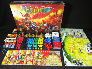 Miniaturas detalladas representan las unidades de combate y las criaturas sobrenaturales que se invocan para mejorarlas. El combate se resuelve a travs de cartas elegidas de una mano de seis cartas que se va agotando, y son mejoradas por bonificadores. Expansiones: C3K: Creatures Crossover Cyclades / Kemet Kemet: Ta-Seti