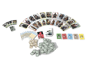 40 cartas de personaje, 40 cartas de rol, 10 cartas de botn, 1 carta de Lder, 8 cartas de Intimidation , 8 cartas de ayuda de juego y 75 billetes.