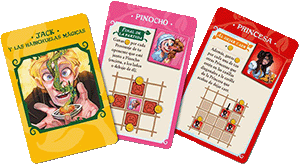 64 fichas de Personaje (Pinocho, Jack y las habichuelas mgicas, El flautista y las ratas, Caperucita roja, El lobo feroz, Los tres cerditos, La princesa, La reina malvada).