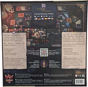 Among Cultists: A Social Deduction Thriller Caramba! Por fin has llegado! El eco de su voz reson por el pasillo como un saludo de otro mundo. El flaco director mir su reloj dorado de bolsillo con un leve temblor en la mano mientras se secaba el sudor de la frente con un pauelo. - Es muy grave? pregunt el hombre de la gabardina marrn con el parche negro cubrindole un ojo en la puerta del vestbulo mientras inspeccionaba la habitacin desordenada y con unas misteriosas runas. Poco despus, l mismo respondi a su pregunta. - Ya veo: Est claramente peor de lo esperado. Se ve as en todas partes por aqu? - S! Todos ellos. Qu significa todo esto, Gomery? Qu es lo que quieren esos cultistas? Estn locos! El hombre del parche en el ojo se acerc a un tocador detrs del director y se sirvi un whisky en un vaso de cristal de plomo. - Forma parte de un ritual arcano. Debemos detenerlo esta noche o despertarn algo inimaginable de su sueo eterno. Rena a todos en el pasillo central de inmediato, antes de que sea demasiado tarde. - Claro, har lo que usted quiera, Gomery, pero por favor, salve la Universidad! Voy a informar a todos los miembros de la Sociedad Secreta. Gomery vaci el vaso de un solo trago sin inmutarse. A continuacin, lo volvi a poner boca abajo sobre el tocador. Encima de este, unos pentagramas de color rojo sangre lo miraban de forma ominosa. - Despus de esto, vyase de la Universidad! Quin sabe qu ms pasar esta noche. No podemos garantizar su seguridad. Among Cultists es un juego de deduccin para 4 a 8 jugadores con agendas ocultas a partir de 14 aos y una duracin de unos 45-90 minutos. Al comienzo de la partida se asignarn roles y equipos de manera aleatoria. Como Investigadores de la Sociedad Secreta, debis intentar frustrar el oscuro ritual de los Cultistas identificndolos y eliminndolos antes de que puedan terminarlo. Ser mejor que evitis a otros personajes, porque cada Encuentro podra ser el ltimo! El objetivo de los traidores es deshacerse de los Investigadores. Solo si logris descubrir a todos los Cultistas o restaurar suficientes habitaciones antes de que se acabe el tiempo, podris salvar la venerable Universidad. Pero debis tener cuidado, porque estn entre vosotros... y la matanza ya ha comenzado! CONTENIDO 6 partes de Mapa de doble cara, 10 cartas de personaje grande, 10 discos de personaje de madera, 182 cartas, 1 ventana rota, 1 reloj con indicador de orden de turno, 8 sobres, 1 bolsa, 18 marcadores de Rol, 12 fichas de habitacin, 25 fichas de libro, 3 fichas de Cultista, 1 ficha de Hombre Pez, 1 marcador de Fase, 1 ficha de voto, 1 ficha de electricidad, 1 marcador de Primer Jugador, 12 fichas de Evento, 1 contador de puntos de victoria, 1 marcador de puntuacin final y 1 Portal.