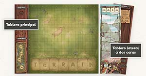 El corazn de Terrorscape es su innovadora mecnica de movimiento oculto con una espectacular pantalla tridimensional, que no solo divide fsicamente los dos bandos, sino que acta como una torre de dados y centro de tensin narrativa.