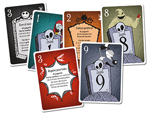 Pesadilla Antes de Navidad Halloween o Navidad? En este juego de cartas gil y estratgico, la decisin es tuya! Encarna a uno de tus personajes favoritos y consigue todas las fichas de Fiesta que puedas. Cada personaje dispone de un mazo de cartas exclusivo y acorde con su carcter. Juega tus cartas con cuidado para superar a tus rivales. Ganar quien tenga ms fichas de Fiesta al final de la partida! Las fiestas nunca haban sido tan divertidas ni tan reidas! Componentes 6 tableros de Personaje 126 cartas de Personaje 12 cartas de Ubicacin 1 carta de Ubicacin Central 136 fichas de Fiesta de doble cara 2 dados de Oogie Boogie 1 ficha de Humor del Alcalde 1 ficha de Investigacin de Jack 1 ficha de Calabaza 1 ficha de Zero con peana 1 reglamento.