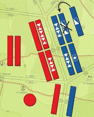 Triomphe a Marengo Northern Italy, 14 June, 1800: The outmaneuvered Austrian army attacked the French under Bonaparte, took them by surprise and defeated them quickly in the morning fight. Thinking that the battle was over, they pursued the retreating French. However, when General Desaix arrived with reinforcements in the late afternoon, the French started a defiant counterattack and turned the Battle of Marengo into a glorious triumph. Triomphe a Marengo recreates that dramatic battle. One player takes the role of Bonaparte whose troops are scattered at the beginning, while the other attacks with the Austrians. He has to defeat the French, before they can strike back with their reinforcements. Triomphe a Marengo is fast playing. Departing from almost all wargame conventions, it brings the look of the 19th century linear warfare onto the table. Based on the award-winning Bonaparte at Marengo and improving it in many aspects, offers a unique game experience: The redesigned map gives you wide open spaces for clever maneuvers; the modified combat system is full of drama; and the novel locale-based morale system is nothing but thrill and tension. Since fights are resolved without dice, its not Dame Fortune who will decide about defeat or victory, but only your maneuver skills. Game Contents: 1 mounted map-board (22" x 33") 80 imprinted wooden blocks 27 wooden morale disks 1 wooden game turn marker 1 rules booklet