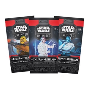 SW Umlimited: La Chispa de la Rebelin, Sobre Empieza tu coleccin de Star Wars: Unlimited con estos sobres de ampliacin! Elige un lder, disea tu mazo y desafa a tus rivales en este trepidante juego de reglas sencillas y posibilidades ilimitadas. La coleccin de La chispa de la rebelin presenta contenido y personajes de la triloga original de Star Wars, Rogue One: A Star Wars Story y la serie de televisin Star Wars: Rebels. Cada sobre de ampliacin permite disear y mejorar mazos para partidas en los formatos uno contra uno, multijugador, preseleccin y mazos cerrados. Ms informacin respecto a este producto [ https://starwarsunlimited.com/es/articles/launch-sequence-es ] Contenido Cada sobre de ampliacin contiene 16 cartas que consisten aproximadamente en: - 1 lder - 1 base/ficha - 9 comunes - 3 infrecuentes - 1 rara o legendaria - 1 premium foil No se garantiza que haya cartas de rarezas especficas en un sobre, caja o expositor individual. Notas Slo se vende en displays de 24 sobres.