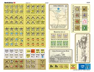North Africa 40 (Expansion) The legend continues with North Africa 40, the prequel expansion to North Africa 41. This expansion covers September 1940 to December 1941. Scenarios cover both Operazione E (the Italian invasion of Egypt; 12 turns) and the Allied counter-offensive, Operation Compass (6 turns). Both scenarios can be extended through December 1941 for an Operazione E full campaign (32 turns) or an Operation Compass full campaign (26 turns). Can you as the Allied commander bag the Italian 10th Army? Will you be ready for theater whiplash, the Middle East Command operational shift to Greece in February 1941? Will you be prepared for the entry of Rommel and the German panzers? Can you as the Italian commander find an answer for the enemy heavy armor, the Matilda tanks? Will you find solutions to the grave errors your historical counterpart made? Will you have the coastal road open for the arrival of Rommel and the DAK blitzkrieg to the Suez Canal? The answers to those questions you will find in a journey filled with tension, excitement, and rich World War 2 history! Setup at the beginning of Operation Compass (subject to change) New rules cover all the significant aspects of the 1940 campaign: General OConnor Italian Camps Civilian Evacuees/Stragglers Tank Reliability Italian Saharan Forces Libyan Tank Command Sollum Port Post-Operation Compass Refit Setup at the beginning of Operazione E (subject to change) An optional naval section in part includes the support actions of the British Mediterranean Fleet and Inshore Squadron. The countersheet includes five sleds to help players keep important units in a convenient location. Countersheet (subject to change) Expansion Includes: One Rules Booklet with historical notes, play notes, bibliography, and example of play One Countersheet One 1940 Turn Record Track One Player Aid Card for the Allied REM Display, Victory Track, and Resource Track to allow players to play the game without the eastern panels of the map sheet One 2-sided Allied Scenario setup and Reinforcement card One 2-sided Italian Scenario setup and Reinforcement card Two Identical Player Aid Cards Ziplock (not boxed)