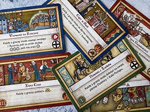 Los invasores pueden aparecer en nuestras tierras mediante cartas de Crnica. En el caso de los blticos, estn liderados por un prncipe, y Masovia es la regin ms amenazada sin embargo, para minimizar la amenaza, puedes invitar a los Caballeros Teutnicos quienes, lamentablemente, en rondas posteriores, podran arruinar nuestros planes incluso ms que los prusianos o lituanos. Un tipo interesante de invasor es la Horda de Oro, es decir, el jinete mongol. Probablemente arrasarn toda Polonia. Cada jugador, comenzando por el prncipe, los lidera por turnos.