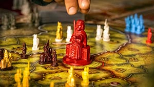 Poltica: aqu tenemos dos opciones: robar tres cartas y quedarnos con dos, eligiendo entre cartas de la corte (que desencadenan diversas acciones de intriga) o cartas de vecinos (que nos permiten movilizar fuerzas de potencias adyacentes).