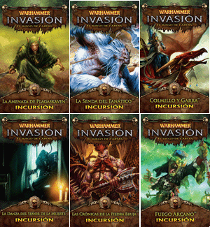 Requiere Warhammer: Invasin (El Juego de Cartas) Expansiones: Serie el ciclo de la Corrupcin: Pack El Ciclo de la Corrupcin Serie el ciclo del Enemigo: Incursin 1: Derricksburgo en Llamas Incursin 2: La Cada de Karak-Grimaz Incursin 3: La Forja Silenciosa Incursin 4: Redencin de un Mago Incursin 5: El Cuarto Hito Mgico Incursin 6: Sol Sangrante Serie el ciclo de Morrslie: Incursin 1: Presagios de Ruina Incursin 2: La Luna del Caos Incursin 3: El Cometa de las Dos Colas Incursin 4: Seales de las Estrellas Incursin 5: El Eclipse de la Esperanza Expansiones Mayores: Warhammer: Invasin Asalto a Ulthuan Warhammer: Invasin La Marcha de los Malditos