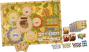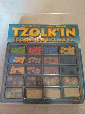 Tzolkin The Mayan Calendar El tablero de juego representa un calendario Maya con una rueda dentada de 26 dientes (Rueda Tzolkin) conectada a 5 ruedas ms pequeas que representan las 5 localizaciones donde se desarrolla la civilizacin Maya (Palenque, Uxma, Tikal, Yaxchilan y Chichen Itza). Los jugadores asumen el rol de las diferentes tribus mayas. El tablero permite la realizacin de diferentes acciones que pueden beneficiar a tu tribu. En tu turno puedes elegir entre colocar trabajadores o ruedas, o bien coger trabajadores que han sido puestos en un turno anterior. Los trabajadores realizan las diferentes acciones cuando los coges.