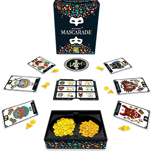 Mascarade Mascarade es un juego de engao de 2 a 13 jugadores, diseado por el genial Bruno Faidutti. Cada jugador recibe una carta de personaje, boca abajo. Durante la partida, los jugadores intercambiarn sus personajes, de forma que nadie est nunca seguro de la carta que tiene frente a s mismo! El objetivo del juego es utilizar los poderes de los personajes para obtener 13 monedas de oro. Sin embargo, si un jugador quiebra, la partida termina inmediatamente y gana la partida el jugador ms rico.