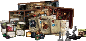 Contenido: 1 hoja de reglas, 6 mdulos de tablero, 2 cartas de Investigador, 2 miniaturas de investigador, 8 cartas de Objeto comn, 1 carta de Objeto nico, 10 cartas de Hechizo, 9 cartas de Estado, 4 cartas de Dao, 4 cartas de Horror, 4 indicadores de Monstruo, 4 miniaturas de monstruo, 16 fichas de Fuego/Oscuridad, 10 fichas de Pista, 7 fichas de Personaje, 2 fichas de Pared y 4 fichas de Llave.