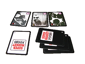 Supermarket Psycho confronts you with the real life horror of supermarket stress. Will you be the first to snap and - to the other players amusement - go crazy. And will you make them pay in the ensuing food fight?