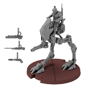 Star Wars Legion: AT-RT PREPARADOS PARA ATAQUE TERRESTRE. - General Rieekan Los AT-RT recuperados de entre los restos de las batallas libradas durante las Guerras Clon y restaurados por los ingenieros rebeldes constituyen un recurso escaso pero muy valioso para la Alianza. Pese a disponer de un blindaje menos resistente que otros bpodes de combate, los AT-RT gozan de una increble agilidad y pueden escalar muros bajos y otros obstculos de poca altura. Cuentan con un afuste frontal en el que pueden instalarse numerosos tipos de armamento para adaptar el vehculo a las necesidades del campo de batalla.
