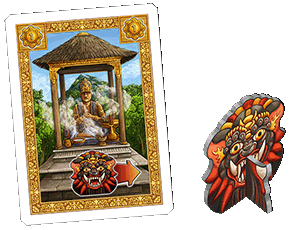 Demonios: el demonio impide al jugador coger cartas de la columna sobre la que est situado. Solo mediante el juego de los sacerdotes los jugadores podrn ir moviendo al demonio para liberar otras columnas de la oferta de cartas.