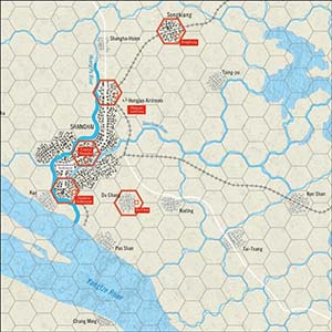 World at War 42: Pacific Battles: Shanghai Pacific Battles: Shanghai is a wargame series of several campaigns in the Pacific Theater of Operations in World War II. The system emphasizes the operational level of these campaigns, and deals with land and air operations. This is a two-player game. One player controls the Japanese, the other the Allies. Shanghai is the third game in the series. It covers the entire land-air campaign for that strategic Chinese city of Shanghai, August to November, 1937. Components: One 22" x 34" map & 228 counters Scale: Players: 2 Level: Brigade/Division