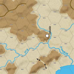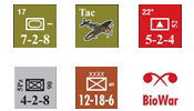 Each extra-large-hex on the 34x22 mapsheet equals 11 miles (18 km) when measured from side to opposite side. Each game turn represents between two and 15 days, depending on the exact time of year of each one. That is, as the autumn weather worsens, and attrition and the inevitable declines in soldier morale and force-robustness take their tolls, each game turn comes to represent a longer period of time. That approach allows for the smooth building into the system of what would otherwise be burdensome factors of weather, ground conditions, operational tempo, etc. Every ground unit represents a division or division-equivalent (176 large-size NATO-style).
