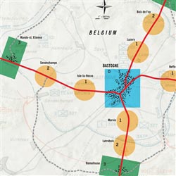 While a Solitaire game, Bastogne can also be played by two or more players, each taking charge of different aspects of the US defense. For example, one player can be overall commander, others command various defensive sectors, and another take charge of air and artillery.