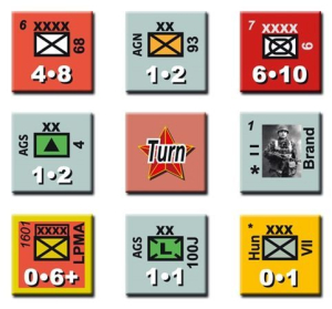 World at War 50: Zhukovs War Zhukovs War - From Stalingrad to Kursk on the Eastern Front cubre el perodo central fundamental de la lucha titnica entre la Alemania de Hitler y la URSS de Stalin, desde julio de 1942 hasta julio de 1943, un punto de inflexin en la guerra en el Frente Oriental. Liderando la carga sovitica estaba un maestro practicante del arte operacional, Georgy Zhukov. Abundan las opciones estratgicas para ambos jugadores; la victoria es para el que sea capaz de llevar a cabo mejor la estrategia elegida, mientras mantiene una reserva para contener la accin repentina del enemigo o aprovechar una oportunidad. El mapa cubre el frente oriental desde Leningrado hasta el Mar de Azov a 20 millas por hexgono. Los turnos cubren un mes cada uno durante la mayor parte del ao, dos meses durante el invierno. La mayora de las unidades son ejrcitos soviticos y divisiones alemanas, adems de algunos cuerpos satlite del Eje. La secuencia de turnos se basa en el sorteo aleatorio de fichas para determinar qu jugador se mueve. Cada ficha extrada permite que un jugador se mueva y ataque, pero con un giro. Un lado le permite al jugador moverse primero, luego atacar, el otro lado invierte la secuencia. Hay dos giros en el mecanismo. Primero, las fichas vienen en varias variedades, con diferentes penalizaciones o bonificaciones segn la ficha y el lado elegido. En segundo lugar, durante ciertos turnos, un jugador u otro obtiene bonificaciones, lo que permite seleccionar la primera ficha para abrir la accin y proporciona una combinacin diferente de fichas que refleja la situacin general en ese momento de la guerra. La victoria puede ocurrir en uno de tres momentos durante el juego; el final de la primera ofensiva alemana, el final de la contraofensiva de invierno sovitica y finalmente el final del juego, despus de la ltima ofensiva alemana de verano. Contenido: ⦁ Dos mapas a todo color de 22" x 34" ⦁ 352 fichas ⦁ Un libro de reglas de 24 pginas