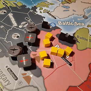 The World at War: Europe En The World at War: Europe el jugador dispondr las fuerzas de las diversas naciones sobre el tablero representadas por cubos de madera. No se representan unidades de combate con fichas de cartn ni se necesitan clculos de proporciones mediante los habituales factores de combate de distintas unidades, frecuentes en juegos "Hex & counter" ms tradicionales. Las nicas fichas presentes en el mapa son las Flotas Areas, las fortificaciones y otros marcadores que se usan para investigacin, recursos, diplomacia, convoyes, etc El mapa de The World at War: Europe est divido en reas y en zonas martimas. El movimiento de las unidades tiene lugar en esas reas. Las unidades terrestres estn representadas por los cubitos de madera y son ms o menos equivalentes a Cuerpos de Ejrcito o ejrcitos dependiendo del pas. Las flotas navales se representan por discos de madera y las flotas areas son representadas por fichas circulares. Todos los pases del mapa pueden entrar en guerra a excepcin de Suiza y Suecia. Se representan las Potencias Mayores (Alemania, Italia, la URSS, Estados Unidos, Reino Unido y Francia) y potencias menores que pueden entrar en guerra en un bando o en el otro, aqu las acciones diplomticas pueden cambiar la Historia. La mayor parte de las mecnicas del juego se centran en acciones disponibles para las Grandes Potencias. La cantidad de acciones disponibles ir variando durante la partida. El nmero de acciones de las que dispone una Gran Potencia representa su capacidad para desarrollar ofensivas, construir ejrcitos, e investigar en tecnologa o industria. Usaremos los dados para resolver muchas de las acciones que se nos vayan presentando durante la partida. Otros aspectos a destacar del juego son la Diplomacia y los eventos que aaden muchas opciones al juego y permiten que cada partida sea diferente. El reglamento no es largo y es sencillo de entender, lo que hace que el juego sea una buena opcin para los jugadores menos experimentados, pero a la vez interesante para los ms veteranos. Contenido: 1 Mapa montado 610x610mm. 1 Documento de reglas del juego de 24 pginas 1 Documento de Libro de Juego de 24 pginas 2 Cartas de Ayuda al jugador Ms de 200 fichas de cartn en 2 planchas y media Ms de 200 cubos de madera 6 Tableros de cartn de Gran Potencia 6 dados de seis caras y uno de diez caras Descrgate los Reglamentos en Espaol Aqu