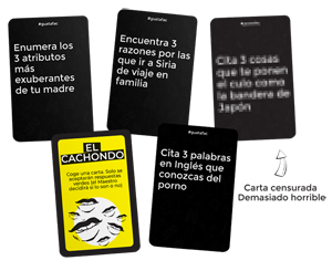 Guatafac DESATA TU MENTE, EL TIEMPO ACABA DE REPENTE! En GUATAFAC, tienes 8 segundos para adivinar los pensamientos ms bizarros de tus amigos, familia o meros extraos con los que tendrs que compartir honestidad, espontaneidad y respuestas sin censura. Reglas del juego: Pon un montn pequeo de cartas en el centro de la mesa, boca abajo. El jugador con el coeficiente intelectual ms bajo se llamar "Maestro Guatafac". Saca la primera carta de la baraja y pregntale al amigo de tu izquierda (si sabe leer) lo que dice la carta. En el caso de que todos seis subnormales deberis turnaros el rol de Maestro Guatafac. Tienes 8 segundos para contestar: puedes contarlos con los dedos, la boca, haciendo un hidalgo o descargndote nuestra App Guatafac en Google Play o App Store. Si descargas la App no te olvides de subir el volumen para disfrutar de la puta mierda de sonidos que hemos escogido especialmente para ti. Si das todas las respuestas en menos de 8 segundos y el Maestro Guatafac las acepta, te quedas con la tarjeta y sumas un punto. Tras responder sers el Maestro o Maestra. Coge la primera carta y hazle la pregunta al amigo o amiga de tu izquierda, y as sucesivamente. El primer jugador en sumar 7 puntos es declarado el puto amo del Guatafac as que no pierdas la cuenta o ten controladas las cartas que vayas acumulando! Contenido 400 cartas (hechas con mucho amor). 80 cartas especiales (para largas noches de ternura y risas). 1 app gratis para descargar.