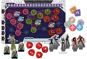 Marvel D.A.G.G.E.R La Tierra est en peligro. Malvados villanos amenazan el mundo, y slo un reducido grupo de hroes se encuentra en posicin de detenerlos. Hostigados por los secuaces del enemigo y con numerosas vidas inocentes en la balanza, nuestros hroes debern cooperar para frustrar los planes del villano y salvar el mundo. Llegarn a tiempo de conseguirlo? En Marvel D.A.G.G.E.R., de 1 a 5 jugadores colaboran para combatir a las fuerzas del mal. Juega como uno de 20 hroes emblemticos como Spiderman, la Capitana Marvel, Daredevil y Thor, recorriendo el mundo para completar misiones, luchar contra los enemigos y plantar cara al supervillano en un enfrentamiento final. Escoge el mejor aspecto para tu hroe, ejecuta combos estratgicos y aguarda la ocasin propicia para desatar todo tu poder. Pide ayuda a tus aliados para hacer frente a villanos de la talla de Loki, Ultrn y Thanos, y juntos os convertiris en los hroes ms formidables del mundo! Contenido 1 cuaderno de reglas 1 gua de hroes 1 tablero de juego 10 hojas de hroe de doble cara 20 peones de hroe 6 peanas de aspecto 6 hojas de aspecto 4 hojas de supervillano 4 peones de supervillano 1 peana de supervillano 60 peones de enemigo 28 cartas de enemigo 10 cartas de asistencia 40 cartas de recurso 42 cartas de evento 58 cartas de misin 5 cartas de referencia 1 ficha de aturdimiento 30 fichas de aspecto 20 fichas de combo 44 fichas de progresin 41 fichas de dao 1 ficha de La Ilada 1 ficha del Bifrost 5 fichas de invasin 3 fichas de contencin 5 fichas de misin 5 dados de hroe 13 peanas de plstico 1 ficha de jugador inicial 1 indicador de amenaza 1 indicador de umbral de amenaza 1 indicador de asistencia.
