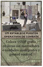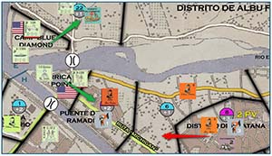 Despertar en Ramadi Despertar en Ramadi es un juego para dos jugadores ambientado en las operaciones urbanas llevadas a cabo en la ciudad iraqu de Ar Ramadi durante prcticamente la totalidad de 2006. Los jugadores en el juego estn divididos en bando de US-Coalicin (ejrcito americano apoyado por unidades del recin creado ejrcito iraqu), mientras el otro controla la fuerza de insurgentes de la zona representados por las facciones sunnes y del AQI (Al Qaeda-Irak). La ciudad de Ramadi se erigi como capital del recin creado Estado Islmico de Irak y fue testigo de operaciones por su control. El mapa de juego presenta la ciudad dividida en zonas que representan las diferentes partes de la ciudad. Inicialmente la ciudad comienza bajo control de la insurgencia en casi todas sus reas, mientras las tropas de la US-Coalicin se establecen en bases en el extrarradio. Es un juego tenso, basado en el control de las reas de la ciudad, el jugador US-Coalicin debe controlar cuantas ms reas mejor, para que el jugador insurgente deje de puntuar. El bando insurgente juega en oculto, amparado por la ciudad de Ramadi, mientras que el jugador US-coalicin debe salir fuera de sus bases para completar la misin de control. Lo diferente de este juego, es que el control no solo es militar, sino que tambin los civiles y las tribus que viven en ellas tienen algo que decir. Se deben controlar las reas tambin desde esta ptica como pro US, pro-insurgencia o neutrales. La aceptacin o no de la poblacin va a facilitar mucho las operaciones o dificultarlas hasta el punto de ser un infierno. Para realizar las operaciones, ambos jugadores disponen de unas operaciones tipo (con un coste en puntos) que podrn ir activando en funcin de los puntos de operaciones que dispongan al inicio de turno. Muchos puntos podrn permitir hacer ms cosas. Colocar COP (Puestos de operacin de combate) para el jugador US-Coalicin es la va para ir controlando cada rea y afianzarla hasta el final del juego (10 turnos) A diferencia de otros sistemas de zonas, en este las mecnicas de activacin son notablemente diferentes, ya que la operacin te permite realizar esa operacin con tantas unidades y de tantas reas como seas capaz de desplegar Pero hay limite de apilamiento, as que no imaginis batallas multitudinarias. Las unidades involucradas hay de todos los tipos, infantera acorazada, infantera ligera, blindados, apoyo artillero, helicpteros Black-Hawk, lanchas ribereas para control del ro Eufrates, Operaciones especiales (incluidos sniper de los Navy Seals), ingenieros, comandantes personalizados y unidades de inteligencia (sin capacidad de combate, pero buenas para poner a los civiles de un rea de tu parte). En el lado de la insurgencia encontramos a las milicias sunnes y del AQI, con morteros, RPG anticarro, pick-up armadas, lderes e incluso sniper. Para complementar las mecnicas, existe una treintena de cartas de eventos histricos que aumentan la temtica y sirven para mejorar tus operaciones o debilitar las del enemigo, que podrs adquirir tambin con los puntos obtenidos. Las cartas van teniendo un coste diferente por turno en funcin del turno en el que se juegan o se dejan sin seleccionar. Los combates se resuelven mediante tirada de dados en los que ambos jugadores incluyen los mximos modificadores favorables que puedan, pero a diferencia de otros juegosAMBOS JUGADORES LANZAN SUS DADOS PARA RESOLVER UN COMBATE, as lo que pareca una operacin fcil del atacante con buenas perspectivas de xito a menudo se convierte en un infierno en el que a menudo vas a tener que usar tropas adicionales para sacar a tus compis de ese lo. Segn el tipo de objetivo atacado habr que comprobar la tabla correspondiente, y adems otro elemento entra en juego de forma crucial: la MORAL. Esta moral es nicamente para el bando US-Coalicin, porque nadie quiere complicarse cuando te dicen que es fcil y sobre todo quien te lo dice est en Washington. Un juego tenso que simula perfectamente el combate urbano desde el punto de vista operacional para el control de una ciudad. A diferencia de los combates realizados en la ciudad cercana de Fallujah donde se destruy en 80% de la ciudad. Las operaciones en Ar Ramadi estaban diseadas para controlar la ciudad sin daarla La llave el favor de las tribus civiles, luego el control militar efectivo Esta operacin forma parte de los libros de historia militar operacional de los EE.UU, que se estudian en las academias militares americanas junto a otras como Aachen o Manila (WW2), Hue (Vietnam) o Mosul y Fallujah (Irak). ![]()