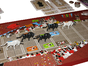 Pamplona: Viva San Fermn! Cada mes de Julio, durante nueve das, Pamplona atrae a millones de personas de todo el mundo para el festival de San Fermn, una tradicin de races medievales. El evento central de las celebraciones es el encierro, tan querido por Hemingway. Gracias a una mecnica simple y elegante, "Pamplona" reproduce fielmente en todos sus aspectos no slo el coraje, la alegra y la adrenalina, sino tambin la tctica y la gestin. Cada jugador debe completar las 4 secciones del recorrido evitando los toros y novillos adversarios pero al mismo tiempo debe intentar cornear y pisotear a sus oponentes con sus propios toros y novillos.