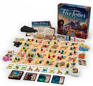 Five Tribes: The Djinns of Naqala Cruzando la tierra de las 1001 noches, tu caravana llega al mtico Sultanato de Naqala. El viejo sultn acaba de morir y el control de la ciudad-estado est en juego. Los orculos predijeron la llegada de forasteros que manipularan a las cinco tribus para ganar influencia y hacerse con el poder. Cumplirs la profeca? Invoca a los antiguos genios, desplaza a las tribus en el lugar adecuado y en el momento oportuno y el Sultanato podra ser tuyo! En Five Tribes, diseado por Bruno Cathala, asumes el papel de un extranjero que trata de dominar Naqala moviendo con astucia a las cinco tribus Asesinos, Ancianos, Constructores, Mercaderes y Visires sobre un tablero formado por losetas de aldeas, mercados, oasis y lugares sagrados. A diferencia de los clsicos juegos de colocacin de trabajadores, aqu los meeples ya estn en juego desde el inicio, y tu desafo ser maniobrarlos con inteligencia para obtener ventajas y dejar a tus rivales en desventaja. El reglamento es sencillo y accesible, como corresponde a un ttulo de Days of Wonder, pero alcanzar la victoria exigir estrategia y clculo. Existen mltiples caminos para imponerte: desde acumular recursos en los mercados, edificar en Naqala, ejercer el poder de los ancianos o asesinos hasta invocar a los poderosos genios, capaces de inclinar la balanza a tu favor. Al final de la partida, el jugador con ms puntos de victoria ser proclamado Gran Sultn de Naqala. Tienes la astucia y la visin necesarias para hacerte con el control de este legendario sultanato?